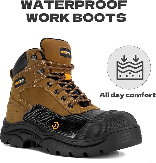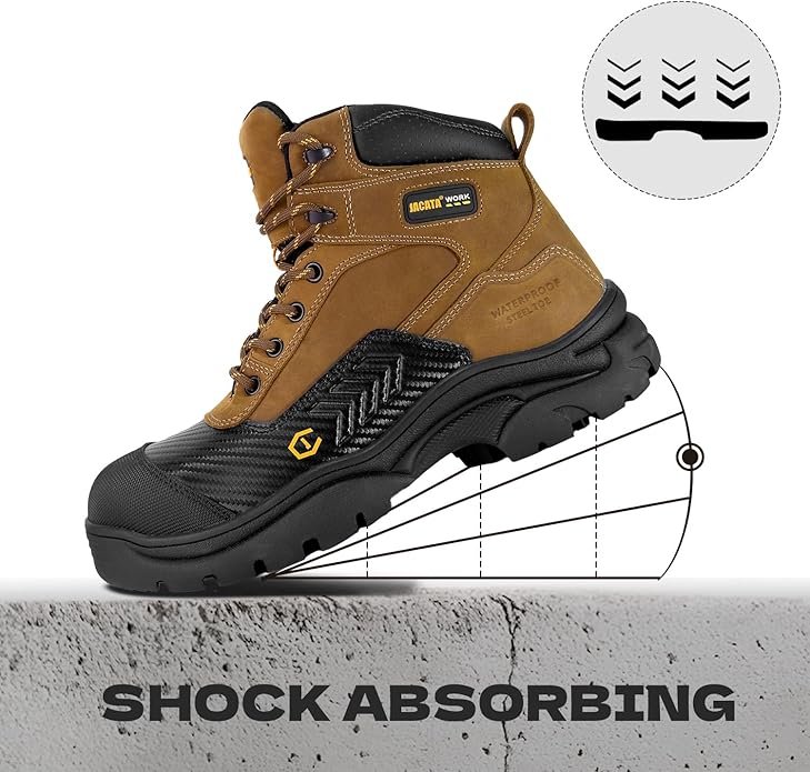 acata Waterproof Leather Soft/Steel Toe Work Boots For Men,Heavy Duty 6Inch Oil/Slip Resistant Rubber Outsole Comfortable Construction Industrial Safety Men’s Work Boots